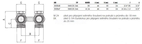 Ivar DS 346 Vekoluxivar pre dvojtrubkový systém-EK x 3/4"F, rohový niklovaná mosaz CW617N 6/48 Ivar DS 346 Vekoluxivar pre dvojtrubkový systém-EK x 3/4"F, rohový niklovaná mosaz CW617N 6/48