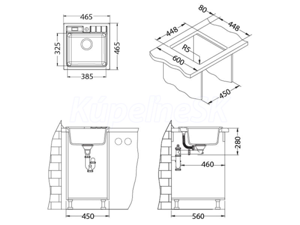 Rozmer balenia (mm): 655x560x267 Vestavěný dřez, univerzál.
