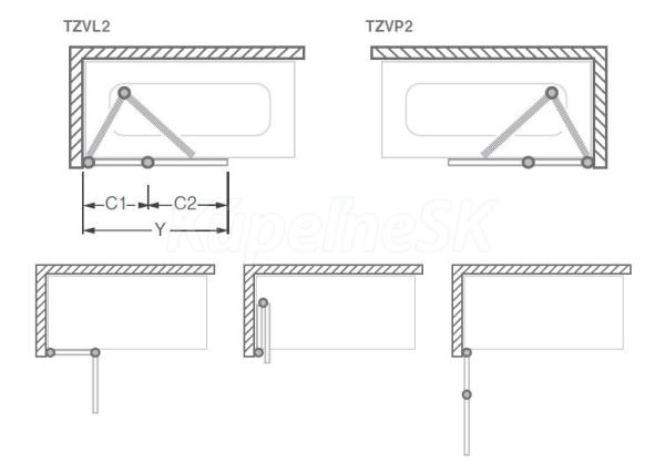 Vanová zástěna sklápěcí s otočným stěnovým systémem.