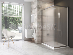 1/2 rohového sprchového kúta Blix vo vyhotovení matný chróm a s výplňou z číreho skla s ochrannou vrstvou Ravak AntiCalc®. Posuvný systém otvárania. Kompletný sprchový kút je zložený z dvoch sprchových dverí!
