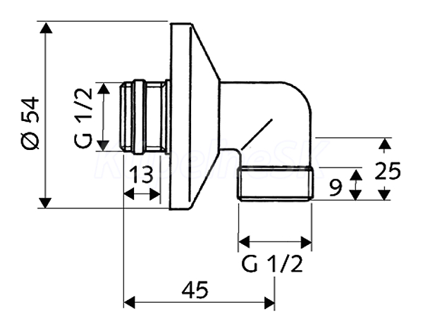 Schell pripojovacie koleno na stenu, 1/2" chróm s ASAG