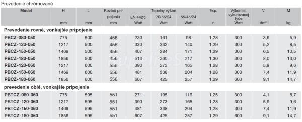 Tepelné výkony merané podľa EN 442 s označením CE.