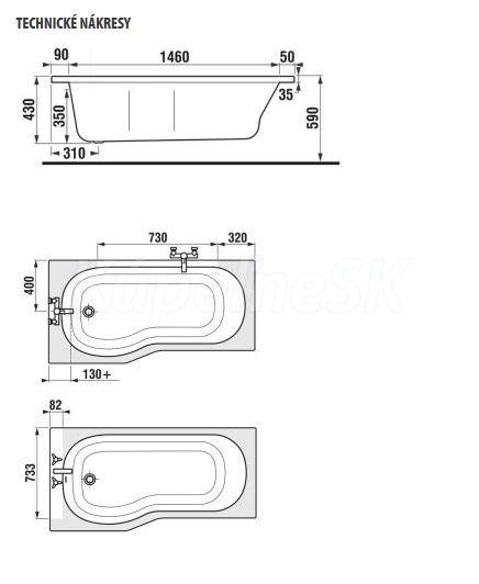 Jika TIGO vana asymetrická 160 × 80/70 pre inštaláciu s panelom, lava, bez podpier Jika Vana TIGO 160x80