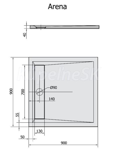 Polysan ARENA sprchová vanička z liateho mramoru so záklopom, štvorec, 90x90x4cm 71601