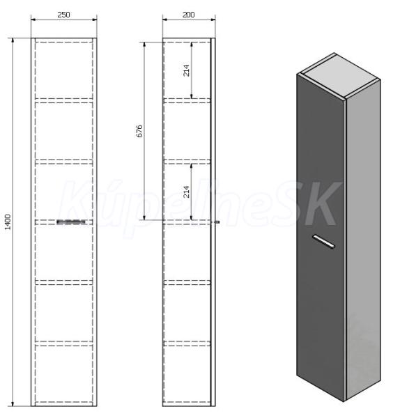 Sapho ZOJA/KERAMIA FRESH skrinka vysoká 25x140x20cm, dub platin Zoja / Keramia fresh - nová generácia kúpeľňového nábytku. Moderný dizajn umývadiel je zladený s ostrými hranami skriniek a podčiarknutý elegantnými úchytkami. Skrinky sú závesné, ale možno použiť aj nožičky pre jednoduchšiu inštaláciu. Povrch skriniek je vyrobený z lamina dub platin. Túto kolekciu je možné kombinovať s doplnkovými skrinkami a zrkadlami. Ceny aj rozmery sú uvedené bez nožičiek. POZOR: nožičky je nutné objednať samostatne viď. súvisiaci tovar Závesná vysoká skrinka 25x140x20cm Farba: dub platin Materiál korpus: lamino Materiál predné plochy: lamino Chrómová úchytka Dvoje dvierka v hornej i dolnej časti 2 drevené police 2 zásuvky Nábytok je dodávaný v zmontovanom stave, pripravený k okamžitej inštalácii Otočením o 180 ° získate pravú alebo ľavú variantu. Inštalujte nábytok na rovnú stenu. Pri skrúteniu korpusu skrinky, môže dôjsť k poruche funkcie Aretačná mechanizmov. Nevystavujte nábytok trvalé vlhkosti a styku s vodou. Po použití kúpeľňu riadne odvetrajte. Proti prípadnému zatekaniu do skrinky použite silikónový tmel. Skrinka je štandardne dodávaná s 2 druhy úchytiek - hranaté (Zoja) a guľaté (Keramia Fresh), aby bolo možné jednoducho kombinovať s ďalšími skrinkami Zoja aj Keramia Fresh podľa Vášho výberu.