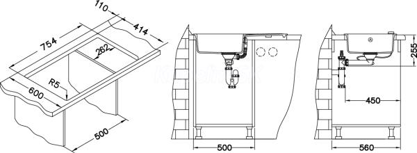 Rozmer balenia (mm): 865x560x220 Vestavěný dřez, univerzál.