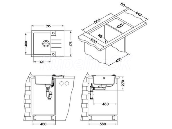 Rozmery balenia (mm): 705x565x225 Vestavěný dřez, univerzál.