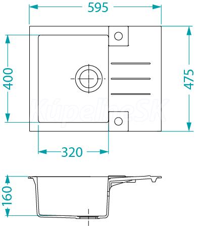 Alveus ROCK 30/04 STEEL - F Vstavaný drez, univerzál. Prevedenie: granitový drez s odkvapom Vonkajší rozmer: 595 x 475 mm Rozmer vaničky: 320 x 400 x 160 mm Exentrický sitkový ventil 3 1/2 s prepadom, sifón pre úsporu miesta s odbočkou na umývačku Úchyty a tesnenia na upevnenie drezu v balení S otvorom pre batériu Návod na inštaláciu v obrázkoch na obale Inštalácia do skrinky so šírkou 450 mm Váha: 12,27 kg Rozmery balenia (mm): 705x565x225 Vestavěný dřez, univerzál. Provedení : granitový dřez s odkapem Vnější rozměr: 595 x 475 mm Rozměr vaničky: 320 x 400 x 160 mm Exentrický sítkový ventil 3 1/2 s přepadem, sifon pro úsporu místa s odbočkou na myčku Úchyty a těsnění pro upevnění dřezu v balení S otvorem pro baterii Návod pro instalaci v obrázcích na obale Instalace do skříňky o šířce 450 mm Váha: 12,27 kg Rozměry balení (mm): 705x565x225