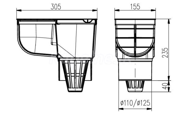 Strešný lapač - kanalizačná vpusť SPODNÉ D 110/125