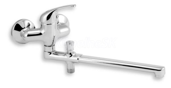 kategória distribúcie Novaservis: Vodovodní baterie | Panelákové baterie. Kvalitná a odolná, keramická kartuš 35 mm . s 5 ročnou zárukou. . Prvotriedne chrómové prevedenie. Paneláková nástenná vaňová batéria s rozostupom 100 mm a výtokovým ramienkom s aretačným prepínačom v dĺžke až 320 mm.