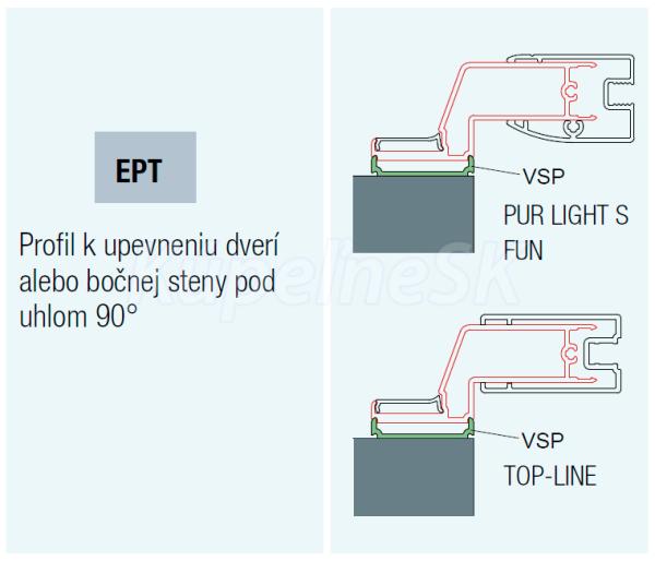 Ronal - Sanswiss EPT Profil k upevneniu dverí alebo bočnej steny pod uh. 90°,AluChróm.ATYP do výšky 2000mm