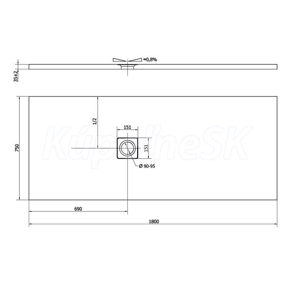 Polysan FLEXIA podlaha z liateho mramoru s možnosťou úpravy rozmeru 180x75x3,5cm