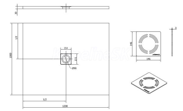 Polysan FLEXIA sprchová vanička z liateho mramoru s možnosťou úpravy rozmeru 120x100x3cm 7