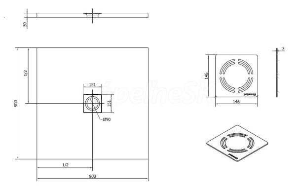 Polysan FLEXIA sprchová vanička z liateho mramoru s možnosťou úpravy rozmeru 90x90x3cm 715