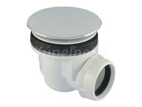 Podlahová vpusť pre sprchové vaničky s chrómovou krytkou, s nízkou stavebnou výškou, jednoduchou inštaláciou a vysokým odvodom vody.