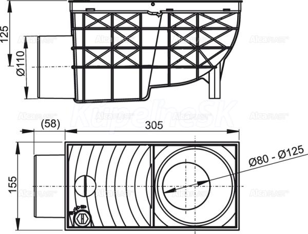 ALCA (Alca Plast / Alca Drain) Univerzálny lapač strešných splavenín 300×155/110 mm bočná, čierna AGV3