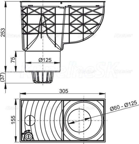 ALCA (Alca Plast / Alca Drain) Univerzálny lapač strešných splavenín 300×155/125 mm priamy, čierna AGV2