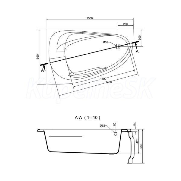 Cersanit JOANNA NEW vaňa rohová asymetrická 150x95 akrylátová, Ľavá + nohy,Biela S301-167