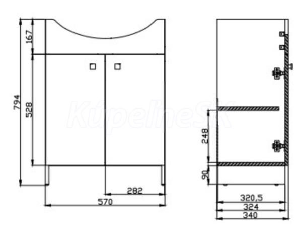 SATI umývadlová skrinka s umývadlom Cersania 60 v bielej lesklej farbe s chrómovými úchytmi. Výrobok s vlastnou montážou.