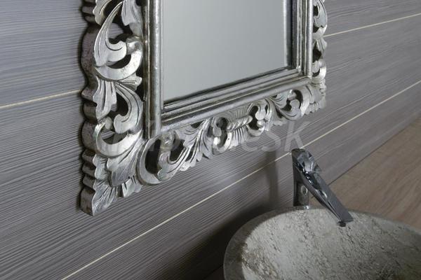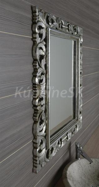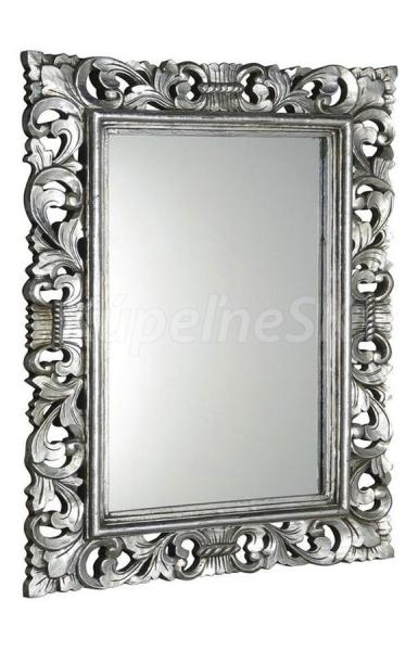 Zrkadlo v ,ručne vyrezávanom drevenom ráme Celkový rozmer: 70x100 cm (šírka rámu 14 cm) Farebné prevedenie rámu: strieborná