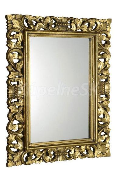 Zrkadlo v ,ručne vyrezávanom drevenom ráme Celkový rozmer: 70x100 cm (šírka rámu 14 cm) Farebné prevedenie rámu: zlatá