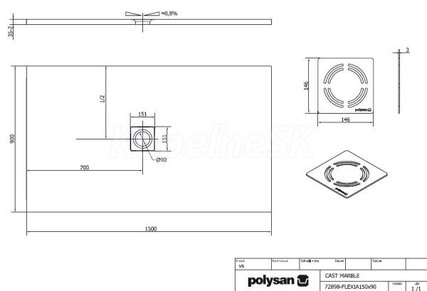 Polysan FLEXIA sprchová vanička z liateho mramoru s možnosťou úpravy rozmeru 150x90x3cm 72