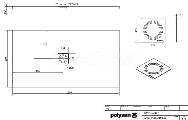 Polysan FLEXIA sprchová vanička z liateho mramoru s možnosťou úpravy rozmeru 150x80x3cm 72