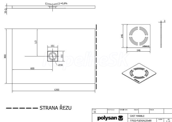 Polysan FLEXIA sprchová vanička z liateho mramoru s možnosťou úpravy rozmeru 120x80x3cm 77