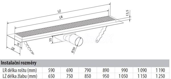 >> Sprchové kúty a žľaby >> Sprchové Žľaby a Rošty >> Gelco MANUS QUADRO nerezový sprchový znížený kanálik s roštom, 950x130x55 mm