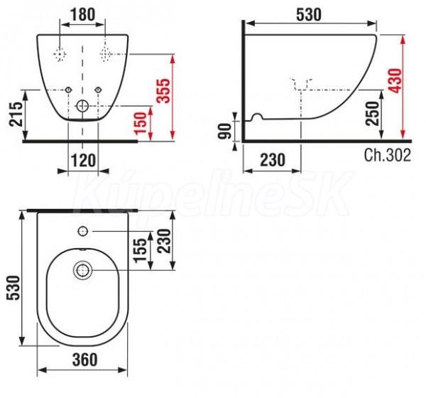 Jika MIO-N Závesný bidet s otvorom pre batériu, bez bočných otv. (vr.inštal.sady), p-biela