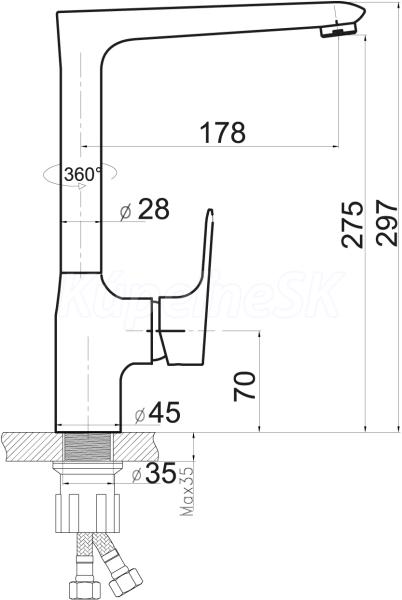Kvalitná a odolná, keramická kartuš 35 mm <b>s 5 ročnou zárukou</b>. Prvotriedne chrómové prevedenie. Stojanková drezová batéria s otočným ramenom s dĺžkou až 220 mm. Súčasťou batérie sú prívodové hadičky.Kvalitní a odolná keramická kartuše 35 mm <b>s prodlouženou zárukou 5 let</b>. Prvotřídní chromové provedení. Stojánková dřezová baterie s otočným ramenem o délce až 220 mm. Součástí baterie jsou přívodní hadičky.
