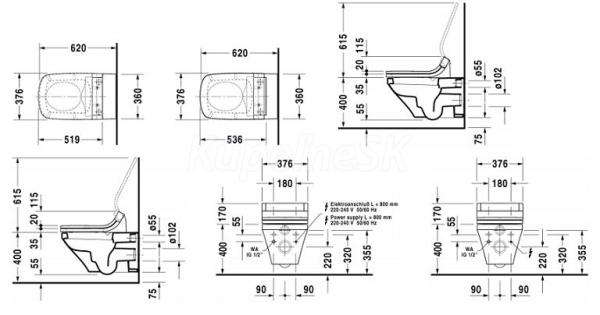 Duravit DURA STYLE SENSOWASH WC závesné 37x62 Rimless, skryt.upevn, Biela 2542590000