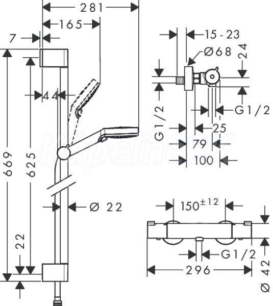 Hansgrohe Crometta Vario 0,6m/Ecostat1001CL Combi termostat.sprch.bat.biela/chróm 27812400