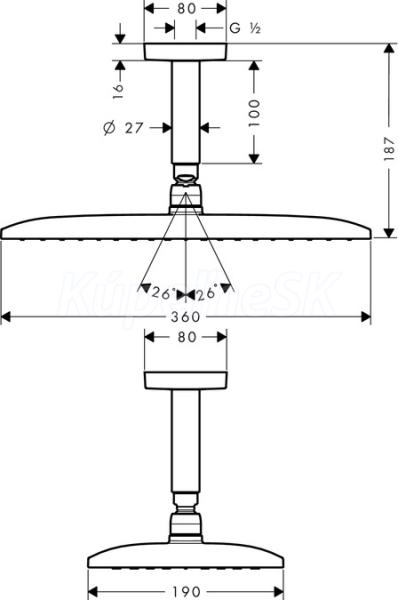 >>  Batérie vodovodné  >>  Sprchové príslušenstvo  >>  Hlavové sprchy  >>  Hansgrohe 26604000 RAINDANCE New horná sprcha E360Air 1jet,prívod strop10cm,EcoSmart,chróm