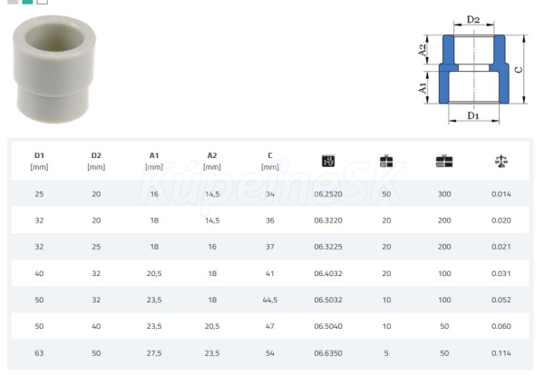 >> Obchod s inštalačným materiálom >> Rozvody pitnej vody-kúrenia-plyn >> PPR plastové rozvody vody >> 63 PPR >> PPR 63 Nátrubok redukovaný 63*50