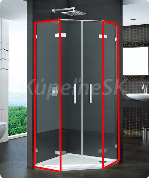 Pre kompletný 5-uholníkový sprchový kút JE POTREBNÉ OBJEDNAŤ 2 BOČNÉ STENY. A PRI NEROVNOSTRANNOM PREVEDENÍ špecifikovať pravú a ľavú časť.