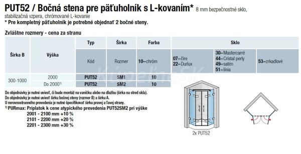 Ronal - Sanswiss PUR PUT52 Ronal Bočná stena pre päťuholník s L-kovaním - ATYP š. 300-1000 v. 2000, chróm, sklo Durlux