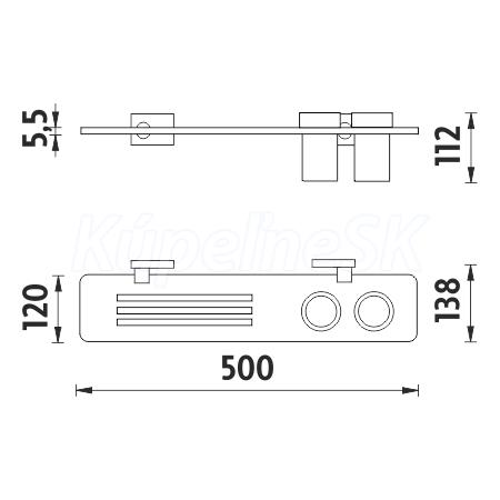 Nimco KEIRA IXI polička s frézovanými otvormi 50cm+poháriky chróm/matné sklo