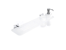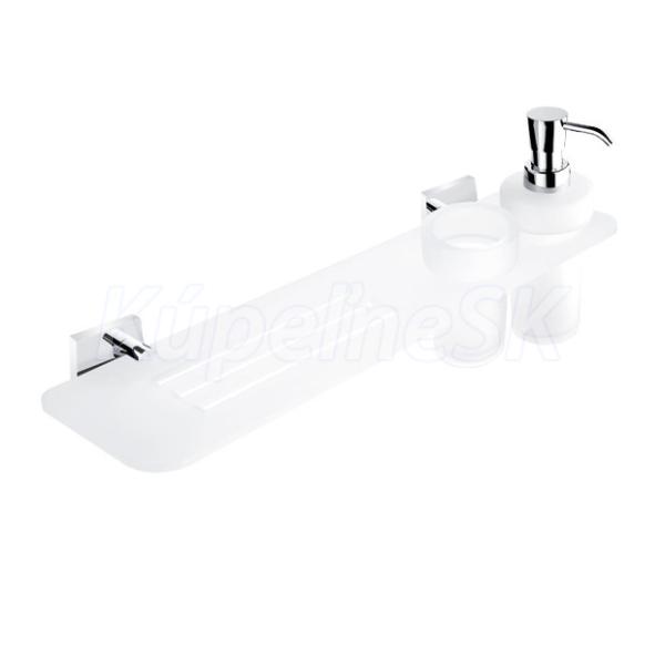 Nimco KEIRA IXI polička s frézov.otvormi 50cm+pohárik+dávkovač na mydlo chróm/matné sklo