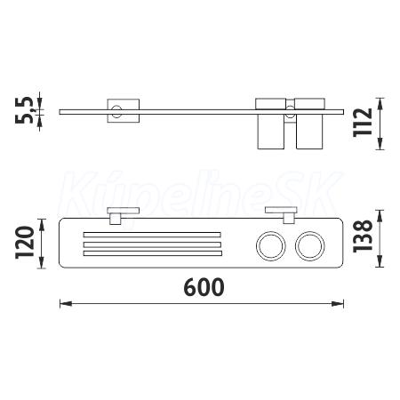 Nimco KEIRA IXI polička s frézovanými otvormi 60cm+poháriky chróm/matné sklo