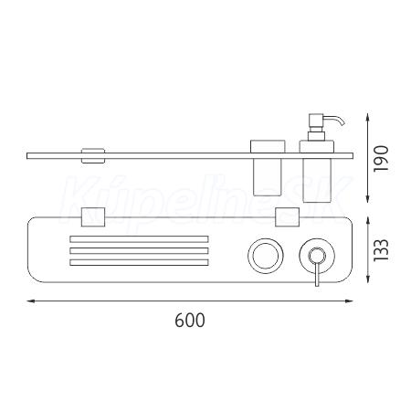 Nimco KIBO IXI polička s fréz.otv. 60cm+pohárik na kefky+dávkovač na mydlo chróm/mat.sklo