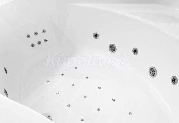 Výhodou sú extra ploché kovové masážne trysky zabudované do vane, ktoré prinášajú komfort pri kúpeli. Celý systém hydromasážnych trysiek je inštalovaný do kvalitné akrylátové vane, ktorá môže zaručiť dlhodobú životnosť, stálu farebnosť a ľahkú údržbu.