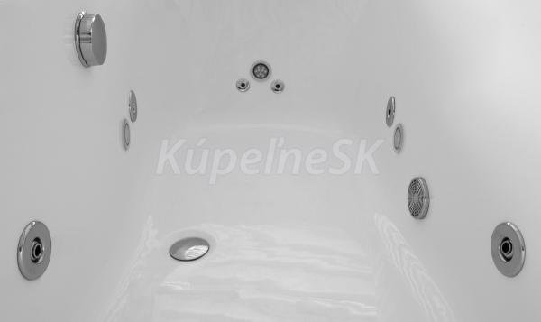 Hydromasážna vaňa vystavená vo vzorkovni: ARTTEC s.r.o. K vani možno prikúpiť a nechať namontovať batériu na okraj vane: