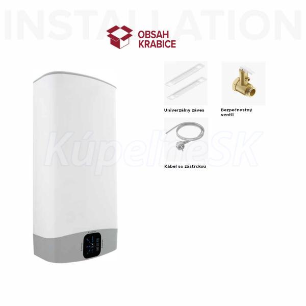 Ariston VELIS EVO 50, kód 3626145, Ohrievače vody | Elektrické ohrievače vody | Ploché | 50 litrov Stredný elektrický ohrievač vody s objemom 50 l. Kompaktný, plochý na vertikálnu aj horizontálnu inštaláciu. Digitálne ovládanie a plánovanie ohrevu.