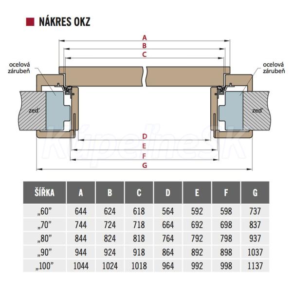 Obklad kovovej zárubne (OKZ) je originálne riešenie pre osadenie dverného krídla na už existujúcu zárubňu bez jej demontáže alebo búrania. Svojou konštrukciou umožňuje OKZ zachovanie pôvodnej šírky dverného krídla. Celková šírka priechodu sa pri tom zmenší o zanedbateľné 3 cm. Obloženie kovovej zárubne sa vyrába v rovnakých odtieňoch a s rovnakými odolnými povrchmi ako dvere. Oproti pôvodným kovovým zárubniam majú moderný a luxusný vzhľad.