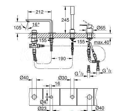 GROHE 19577001 LINEARE Vaňová 4-otvorová batéria, chróm