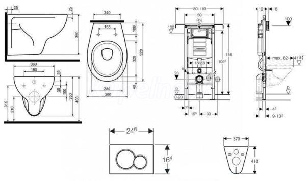 Geberit SET Jadrofix (DuofixŠpeciál) 111.355.00.5+WC závesné Ideal Standard QUARZO+WC sedátko termoplastové+tlačidlo Sigma 20 Biela/Chróm Lesklý