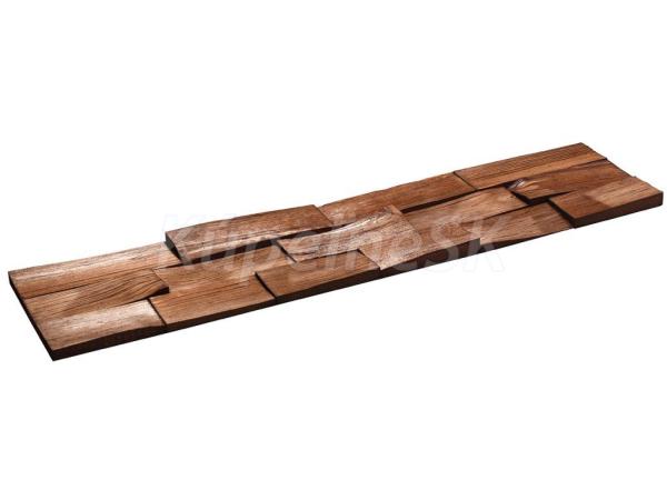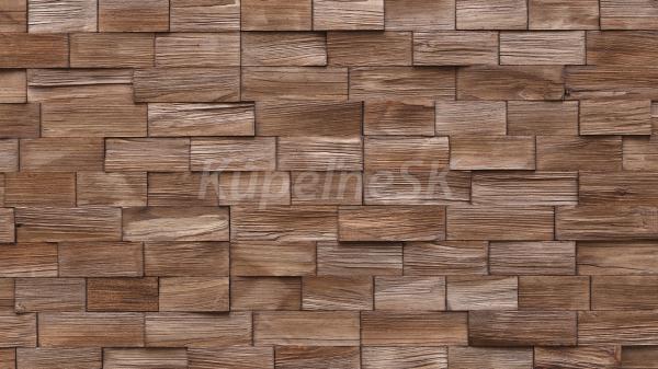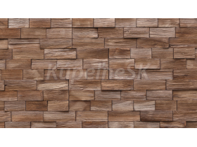 Drevené dekoratívne obkladové panely AXEN 2 charakterizuje drsný štiepaný povrch borovicového dreva vo forme obdĺžníkových pásov. Obklady sú namorené do svetlohnedej farby, ktorá pôsobí veľmi zaujímavým dojmom.