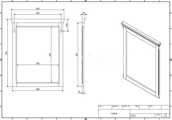 Sapho CROSS zrkadlo 600x800x35mm, starobiela