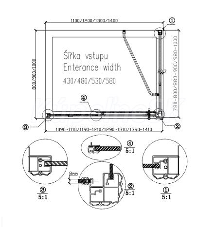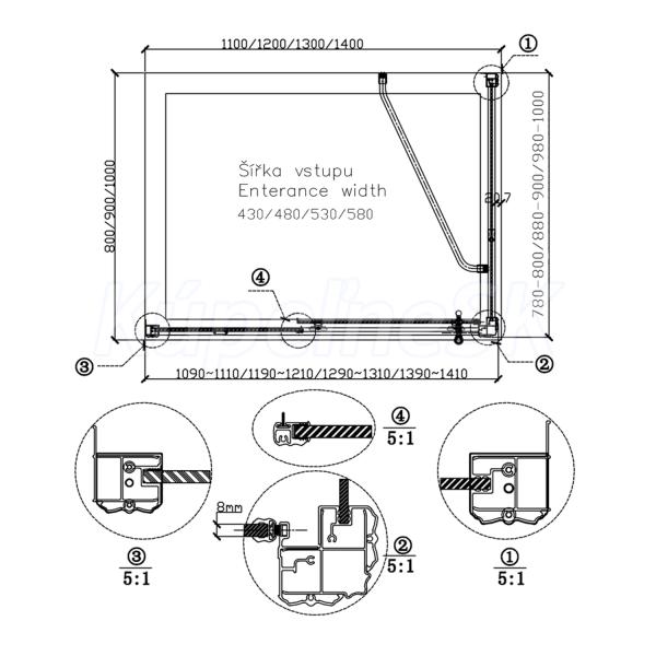 | Tvar | Pevná stena k sprchovacím dverám |